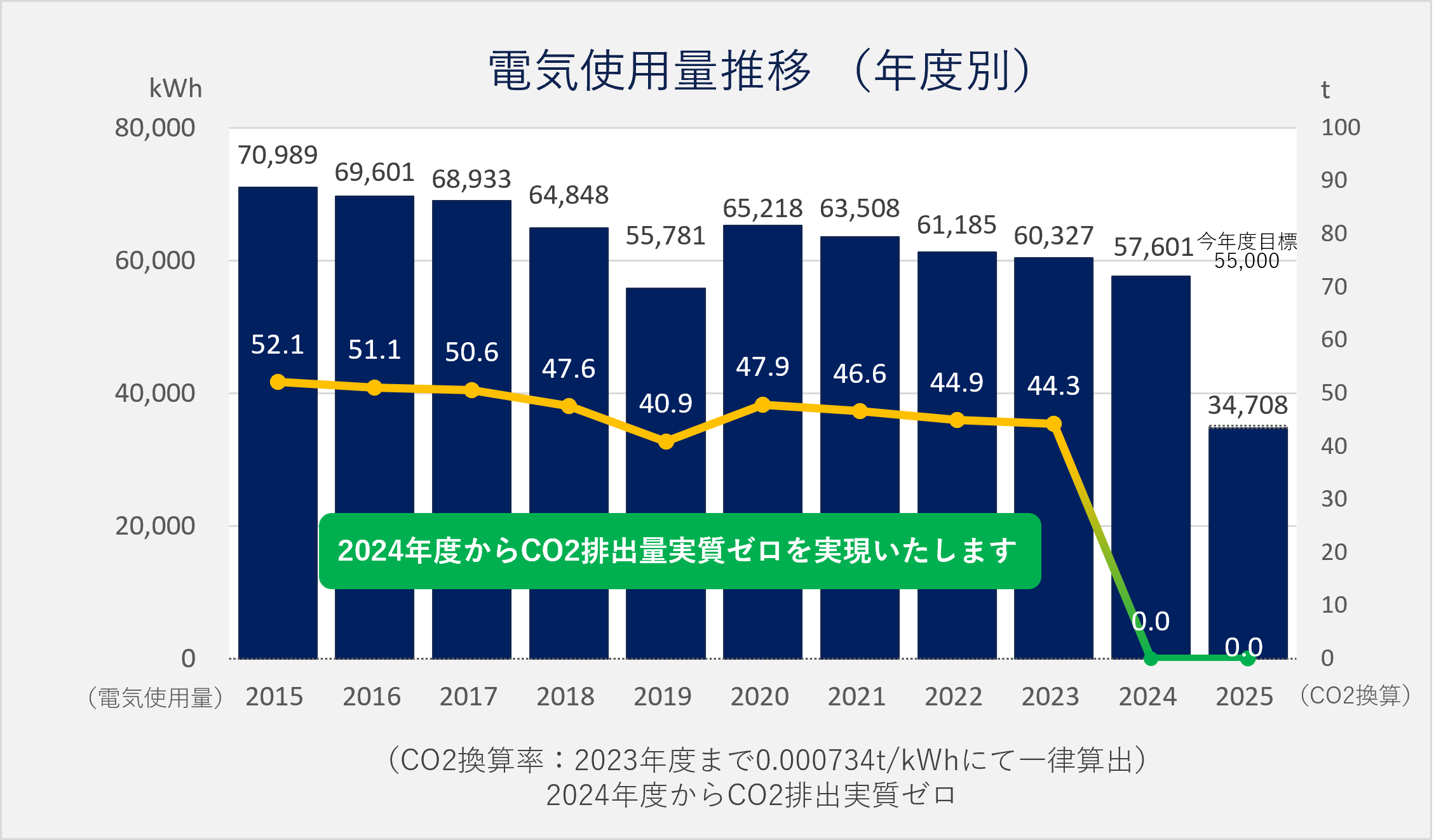 これにより国内全ての拠点において電力使用によるCO2排出量ゼロを実現いたします。